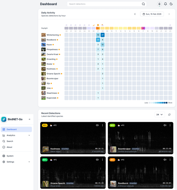 Dus voor 24/7 zonder veel gedoe luisteren in de tuin (met wifi), is de PUC perfect en zou ik geen moment twijfelen als dat je plan is. Tenzij knutselen met hardware en software je tweede plan is dan is BirdNET Go of Pi leuker. Liefhebbers voor dat tweede plan kunnen zich bij mij melden dan starten we een VWG AI werkgroep.